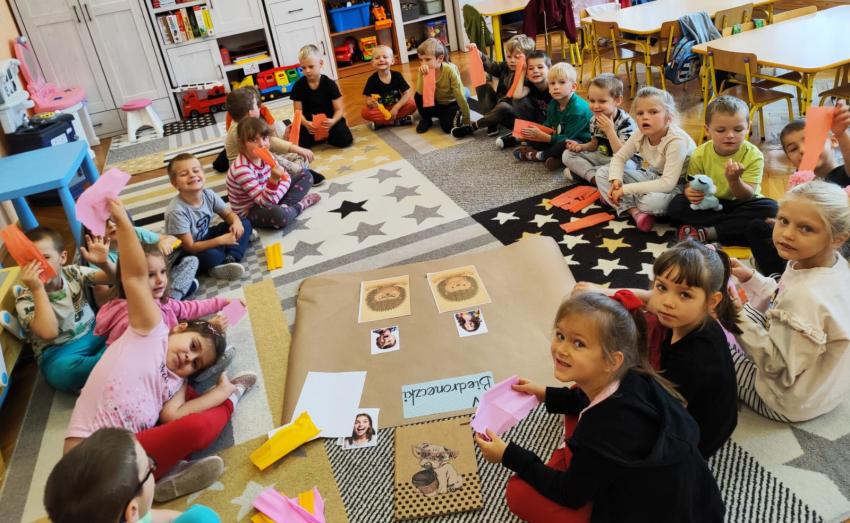 Dzieciaki 5-6 letnie - grupa Tygryski , Biedroneczki, Motylki wzięły udział w zajęciach wspomagających rozwój kompetencji społecznych, podczas których uczyły się określania zachowań życzliwych i nieżyczliwych w środowisku rówieśniczym, adekwatnego reagowania w trudnych sytuacjach i budowania życzliwego klimatu w grupie.
