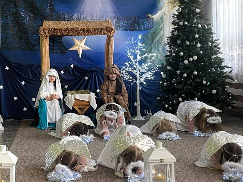 W środę 17 grudnia nasze przedszkole wypełniło się magią Świąt. Dzieci z grupy Motylki w niezwykle wzruszający sposób opowiedziały historię Bożego Narodzenia, dzieląc się radością, ciepłem i dziecięcą szczerością z przybyłymi gośćmi, rodzicami oraz całą społecznością przedszkolną.