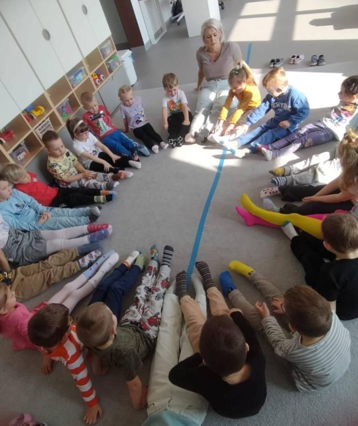 Dzień Kolorowej Skarpetki w naszym przedszkolu był radosnym i pełnym uśmiechu wydarzeniem. Tego dnia dzieci przyszły w różnych, niepasujących do siebie skarpetkach, okazując w ten sposób solidarność i akceptację dla różnorodności. Podczas zajęć rozmawialiśmy o tym, że każdy z nas jest wyjątkowy i zasługuje na szacunek. Dzieci brały udział w zabawach, pracach plastycznych oraz wspólnych aktywnościach, które promowały empatię i zrozumienie dla innych. To był wyjątkowy dzień pełen pozytywnych emocji i ważnych wartości.