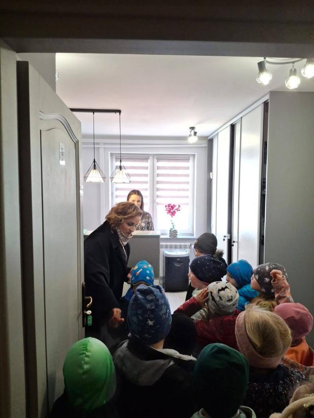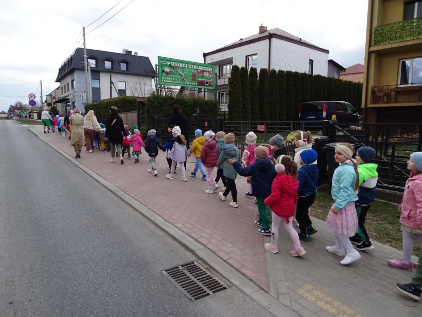 Nasze przedszkolaki kultywując tradycje składania życzeń na świątecznych kartkach wybrały się do instytucji użyteczności publicznej składając wszystkim pracownikom wielkanocne życzenia.