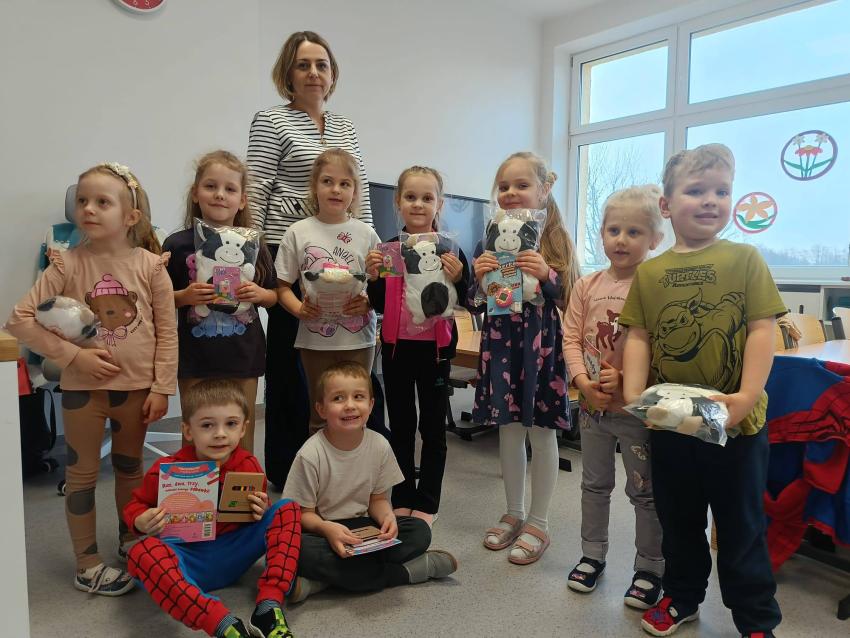 W dniu 26.03.26 r. Biedroneczki wybrały się do Zakładu Opiekuńczo Leczniczego w Tarnogrodzie w celu obdarowania podopiecznych i pracowników świątecznymi stroikami składając wielkanocne życzenia w imieniu Pani Dyrektor, pracowników i dzieci Przedszkola Miejskiego.